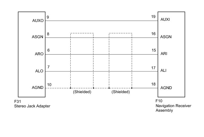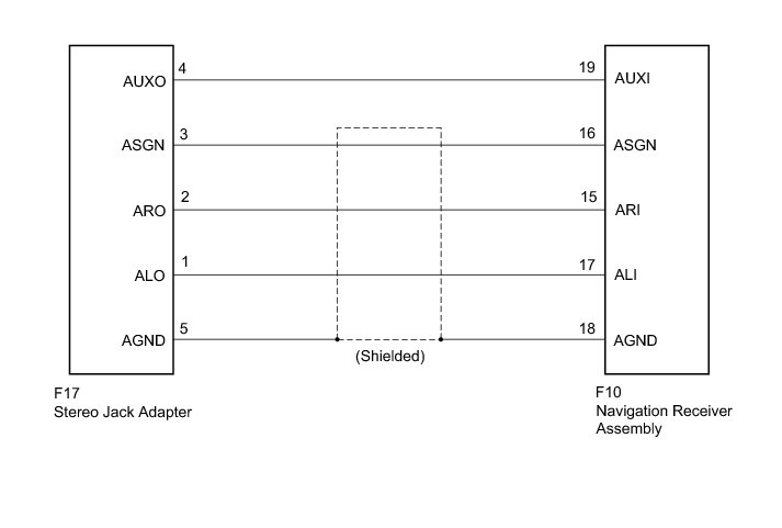 - Sound Signal Circuit between Navigation Receiver Assembly and Stereo Jack Adapter