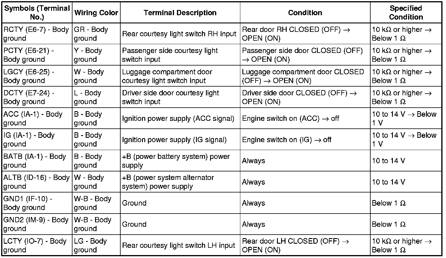 DOOR LOCK: WIRELESS DOOR LOCK CONTROL SYSTEM (w/ Smart Key System): TERMINALS OF ECU