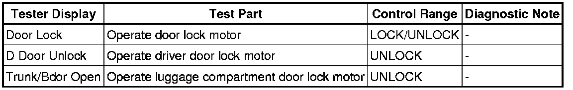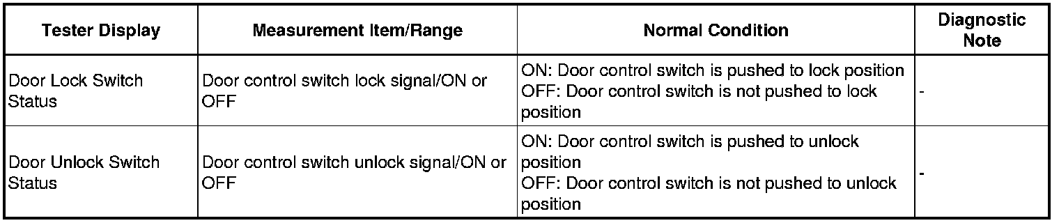 DOOR LOCK: POWER DOOR LOCK CONTROL SYSTEM: DATA LIST / ACTIVE TEST