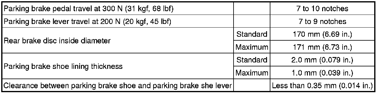 SERVICE SPECIFICATIONS: PARKING BRAKE: SERVICE DATA