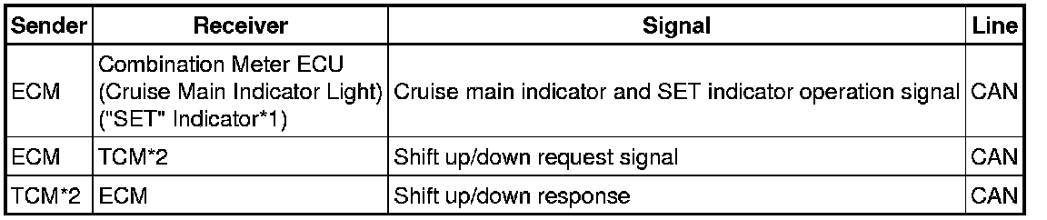 * The ECM cancels the cruise control system when the clutch pedal is depressed and the ECM receives a clutch switch signal (for M/T).
