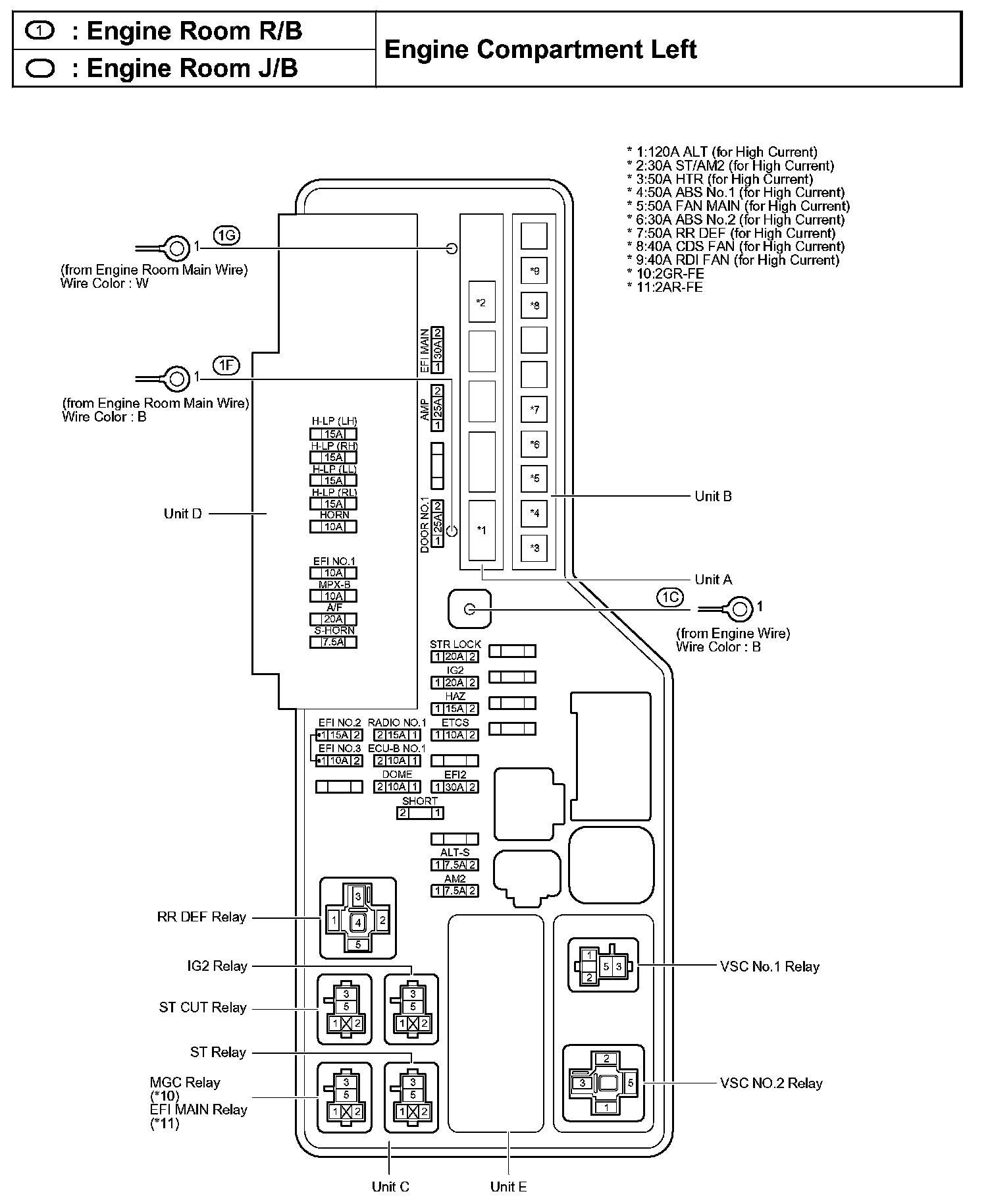 Engine Room R/B, Engine Room J/B - Engine Compartment Left: