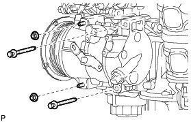 (b) Using an E8 "TORX" socket, remove the 2 stud bolts and compressor and pulley.