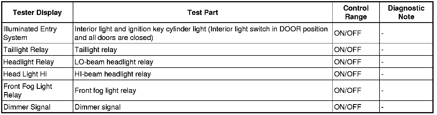 LIGHTING: LIGHTING SYSTEM: DATA LIST / ACTIVE TEST