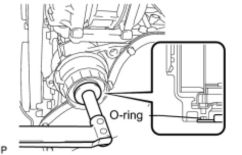 (d) Check that the oil is drained from the oil filter. Then disconnect the pipe as shown in the illustration and remove the O-ring.