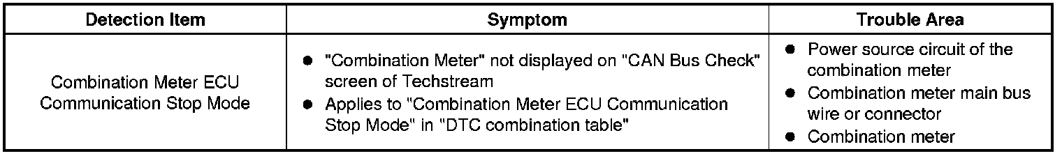 CAN COMMUNICATION: CAN COMMUNICATION SYSTEM: Combination Meter ECU Communication Stop Mode