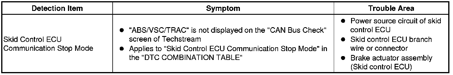 CAN COMMUNICATION: CAN COMMUNICATION SYSTEM: Skid Control ECU Communication Stop Mode