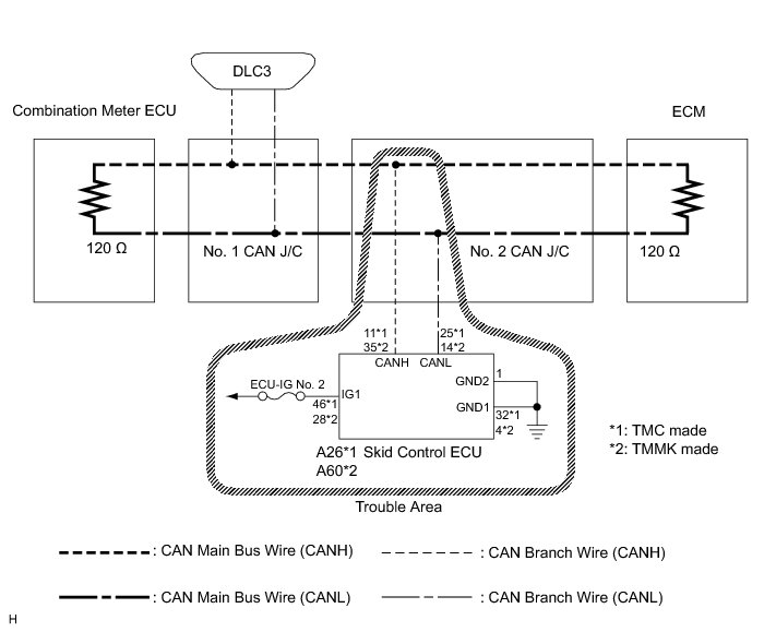 1. CHECK OPEN IN CAN BUS WIRE (SKID CONTROL ECU BRANCH WIRE)