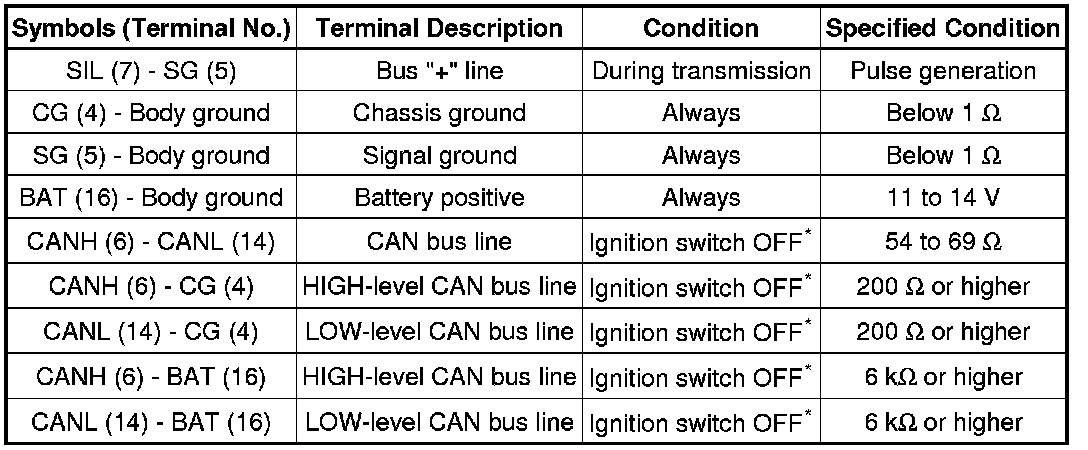 *: Before measuring the resistance, leave the vehicle as is for at least 1 minute and do not operate the ignition switch, any other switches or the doors.