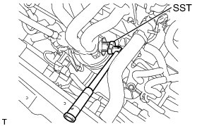 (c) Using SST, remove the air fuel ratio sensor from the exhaust manifold.