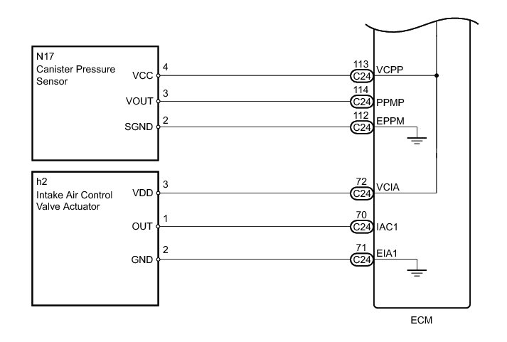 When the VC circuit is shorted, the microprocessor in the ECM and sensors that are supplied with power through the VC circuit are inactivated because the power is not supplied from the VC circuit. Under this condition, the system does not start up and the MIL does not illuminate even if the system malfunctions.