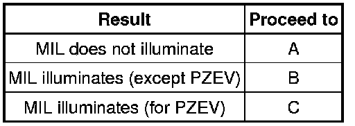 Under normal conditions, the MIL is illuminated for several seconds when the ignition switch is first turned to ON. The MIL turns off when the engine is started.