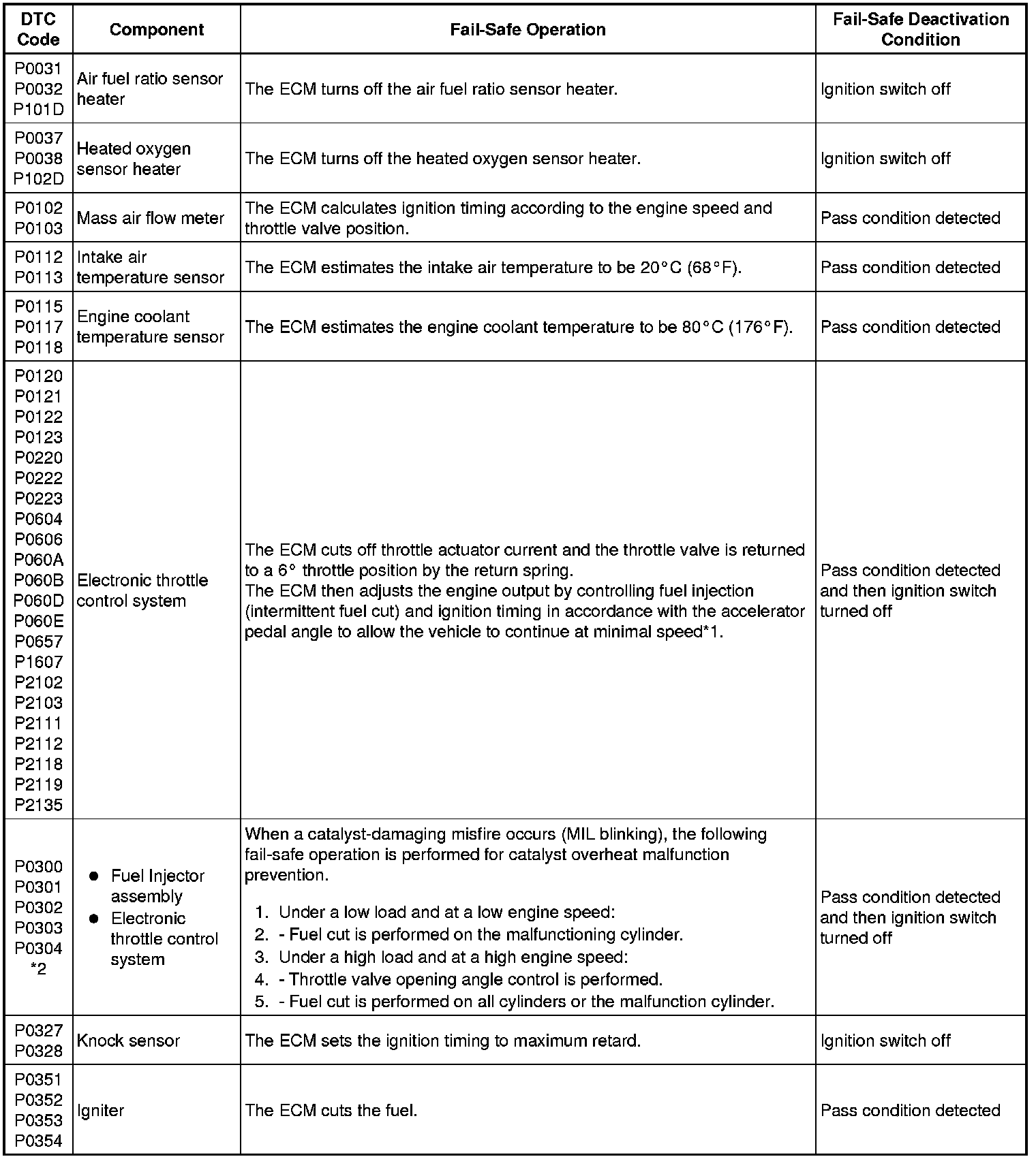 * *2: Misfire-related fail-safe operations occur when catalyst overheat malfunctions occur.