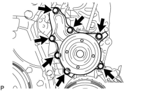 Install a new gasket and the water pump with the 7 bolts.