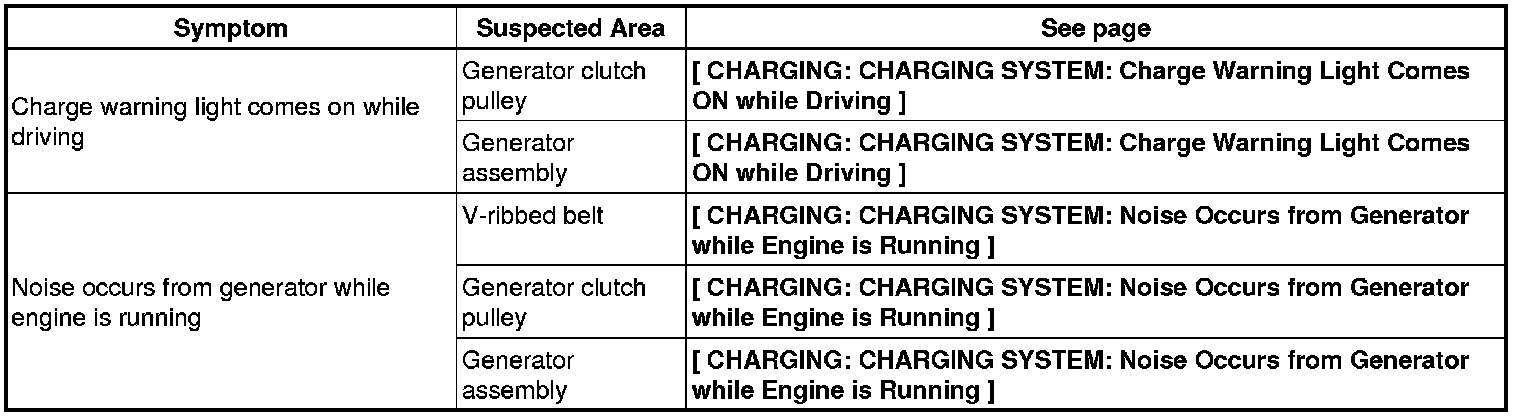 2AR-FE CHARGING: CHARGING SYSTEM: PROBLEM SYMPTOMS TABLE
