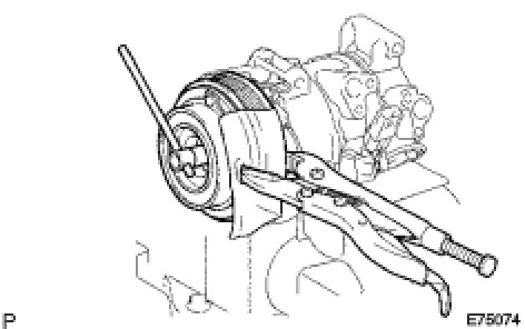 (a) Place the compressor and magnetic clutch in a vise.