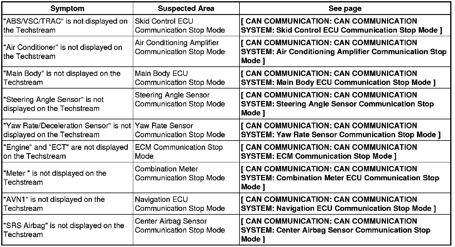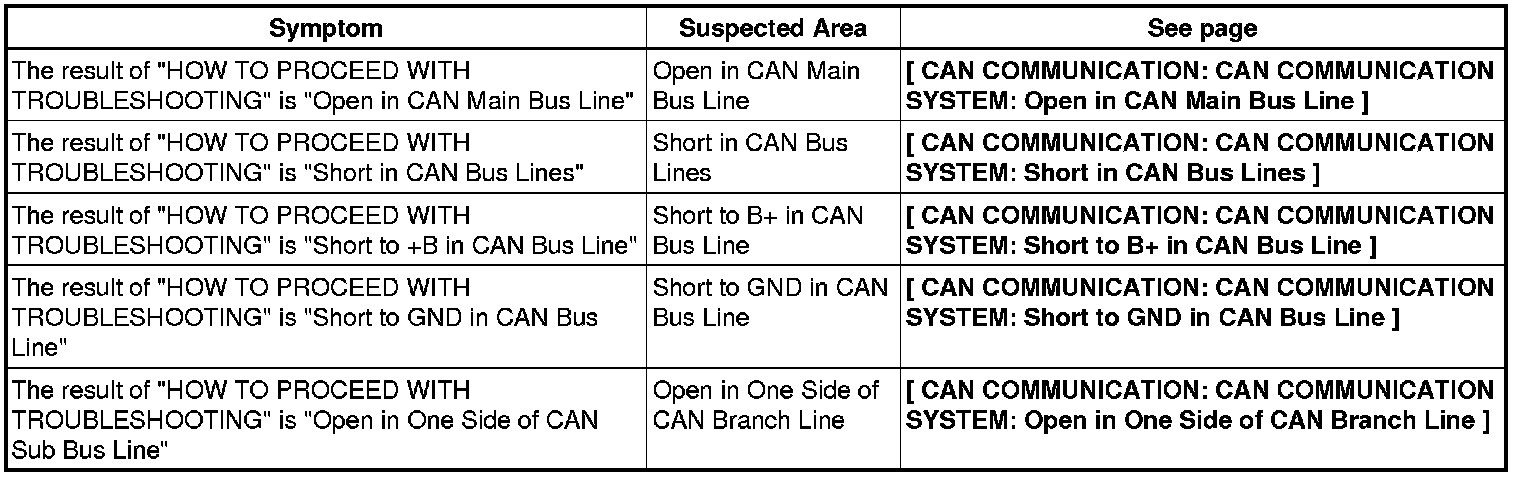 CAN COMMUNICATION: CAN COMMUNICATION SYSTEM: PROBLEM SYMPTOMS TABLE
