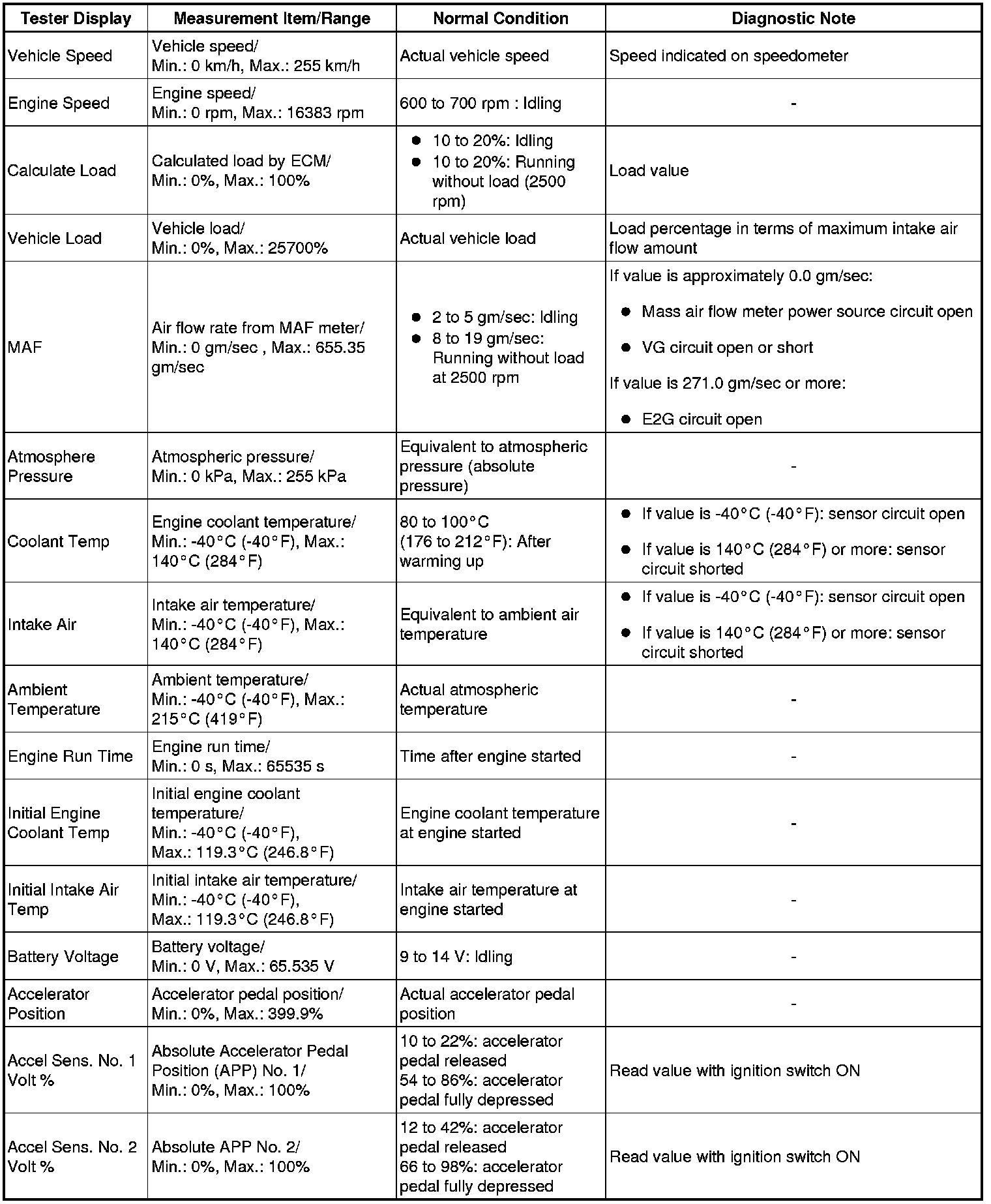 By reading the Data List displayed on the Techstream, you can check values, including those of the switches, sensors, and actuators, without removing any parts. Reading the Data List as the first step in troubleshooting is one method of shortening diagnostic time.