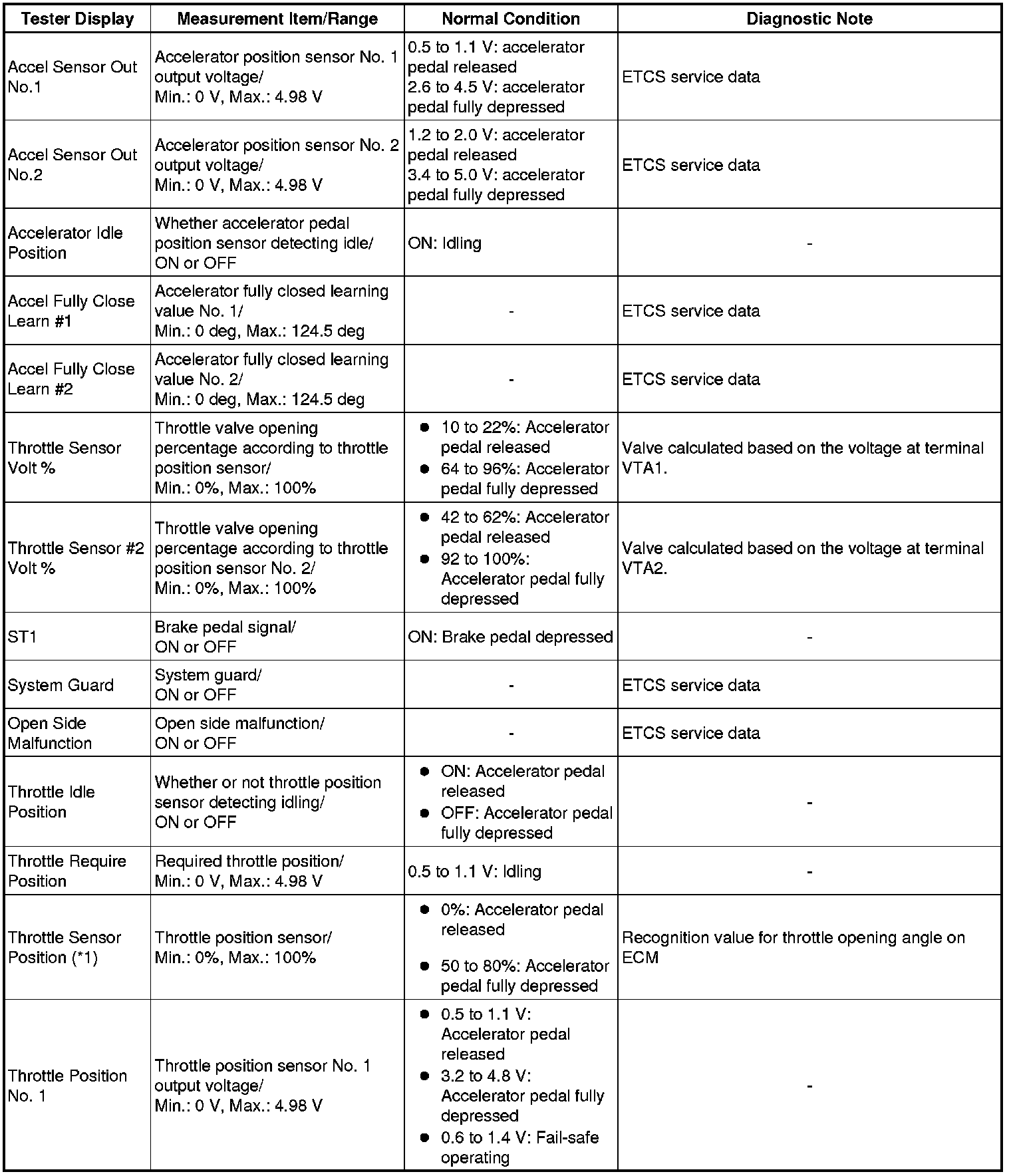 * *1: Excluding throttle valve opening percentage due to Idle Speed Control (ISC).