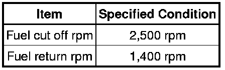 (c) Check that when the throttle lever is released, injector operating sounds stop momentarily (at 2,500 rpm) and then resume (at 1,400 rpm).