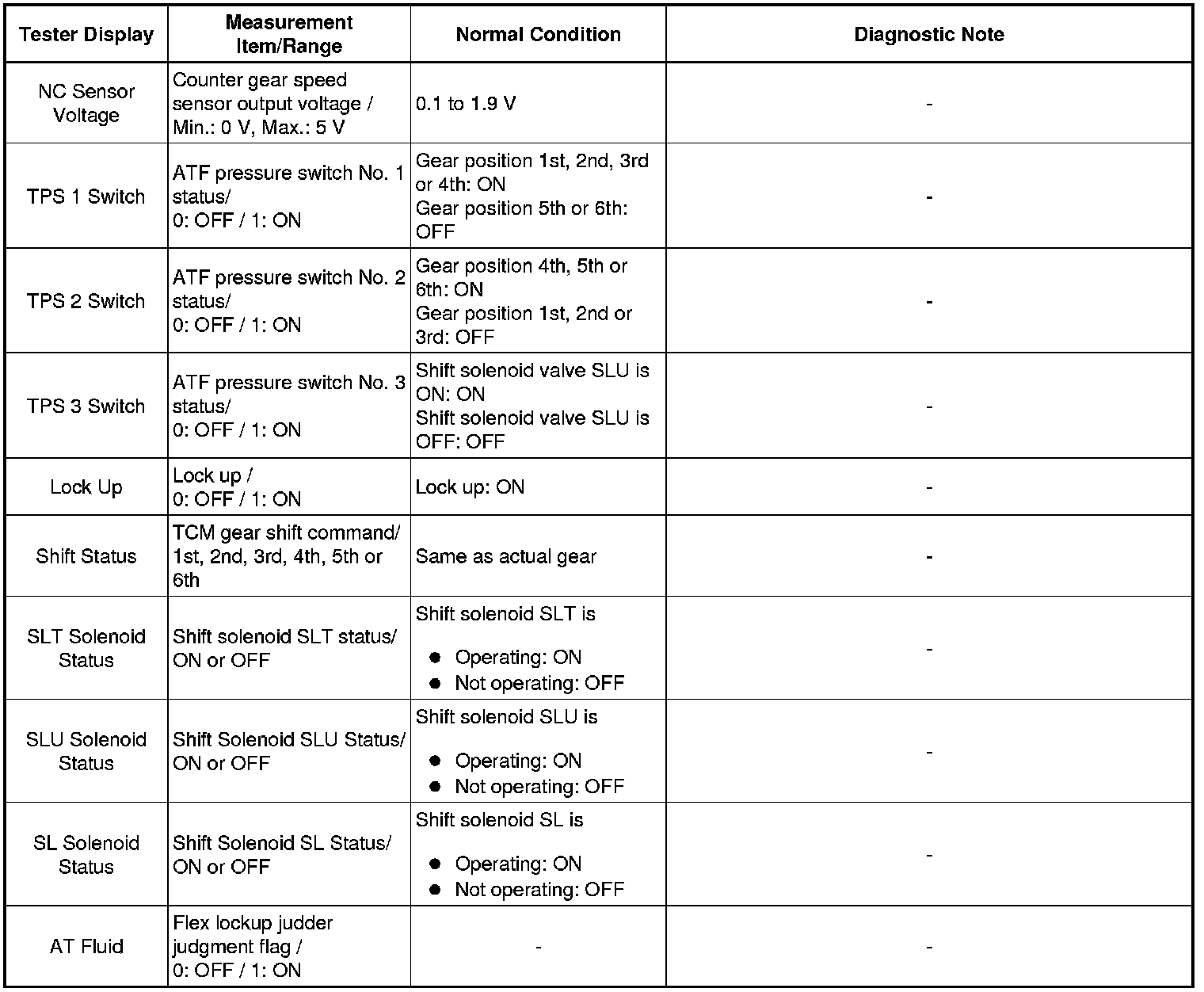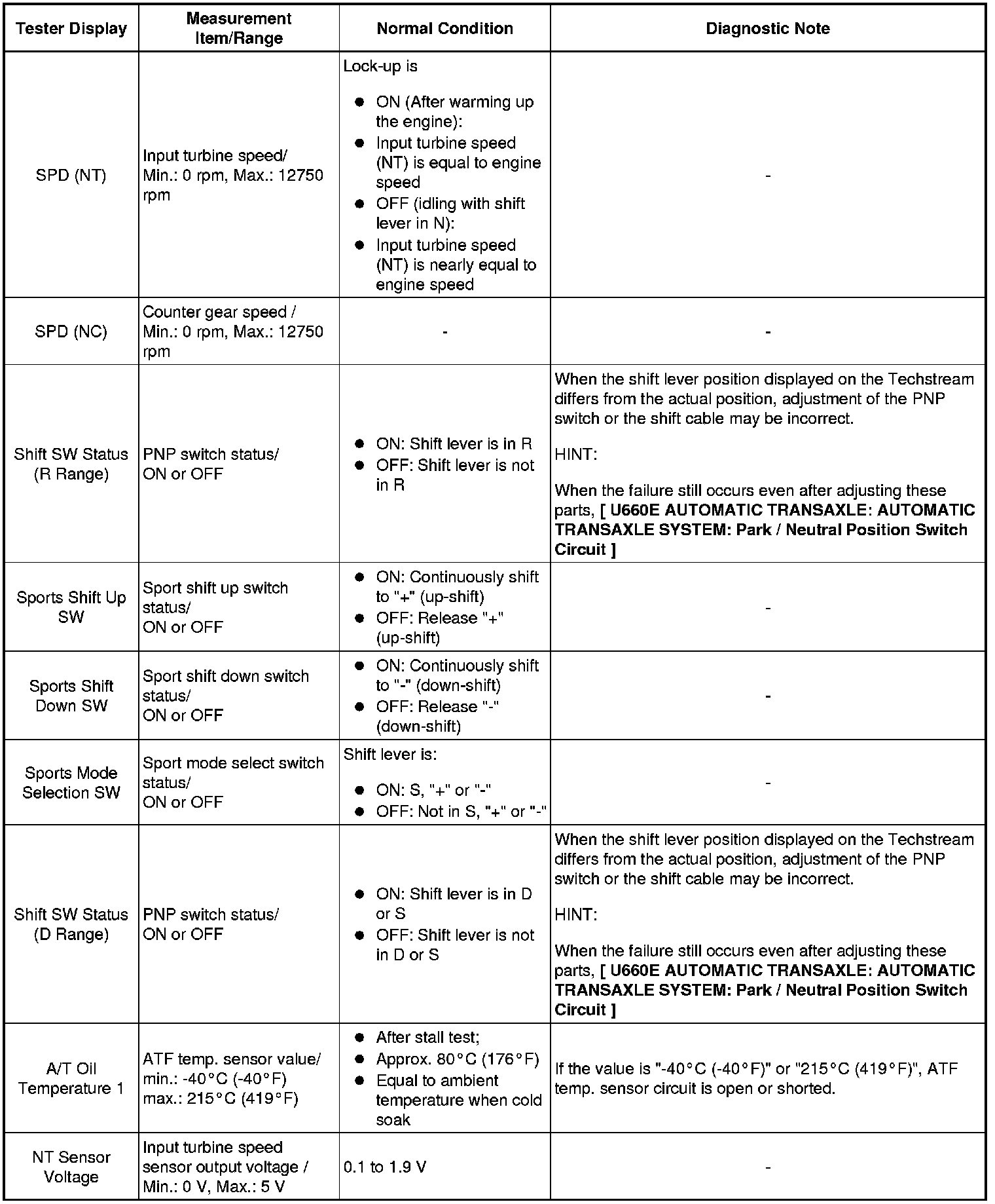 U660E AUTOMATIC TRANSAXLE: AUTOMATIC TRANSAXLE SYSTEM: DATA LIST / ACTIVE TEST