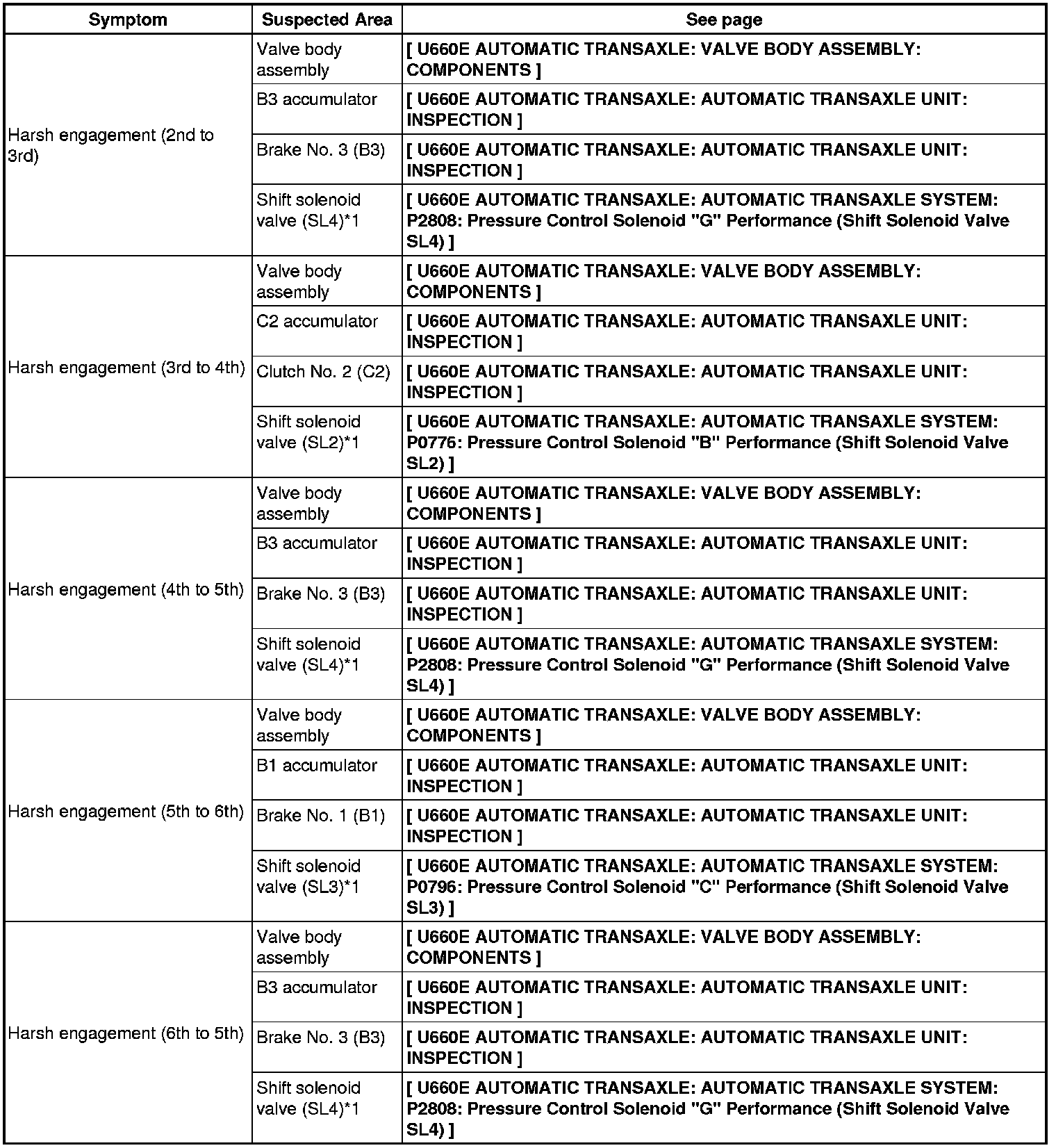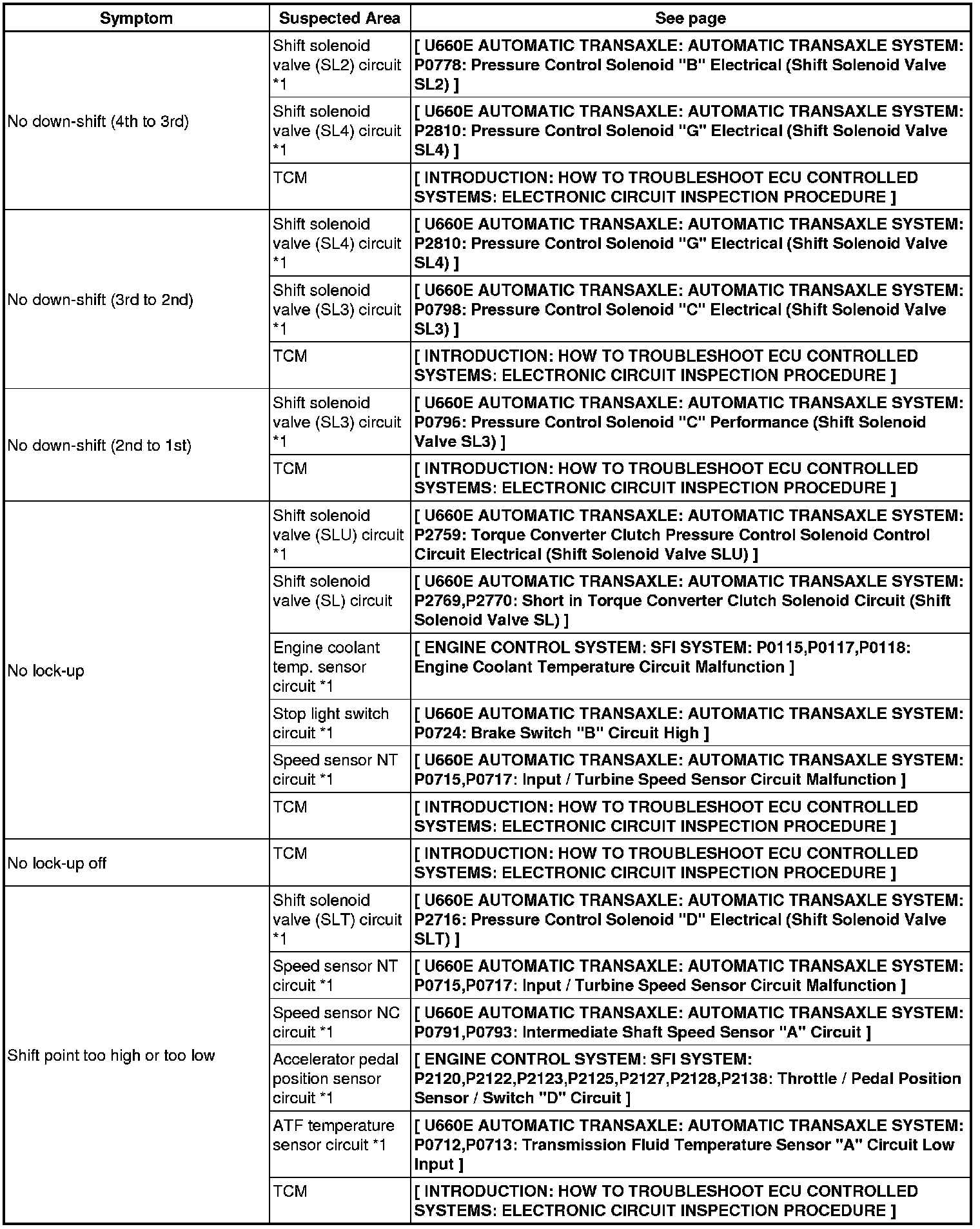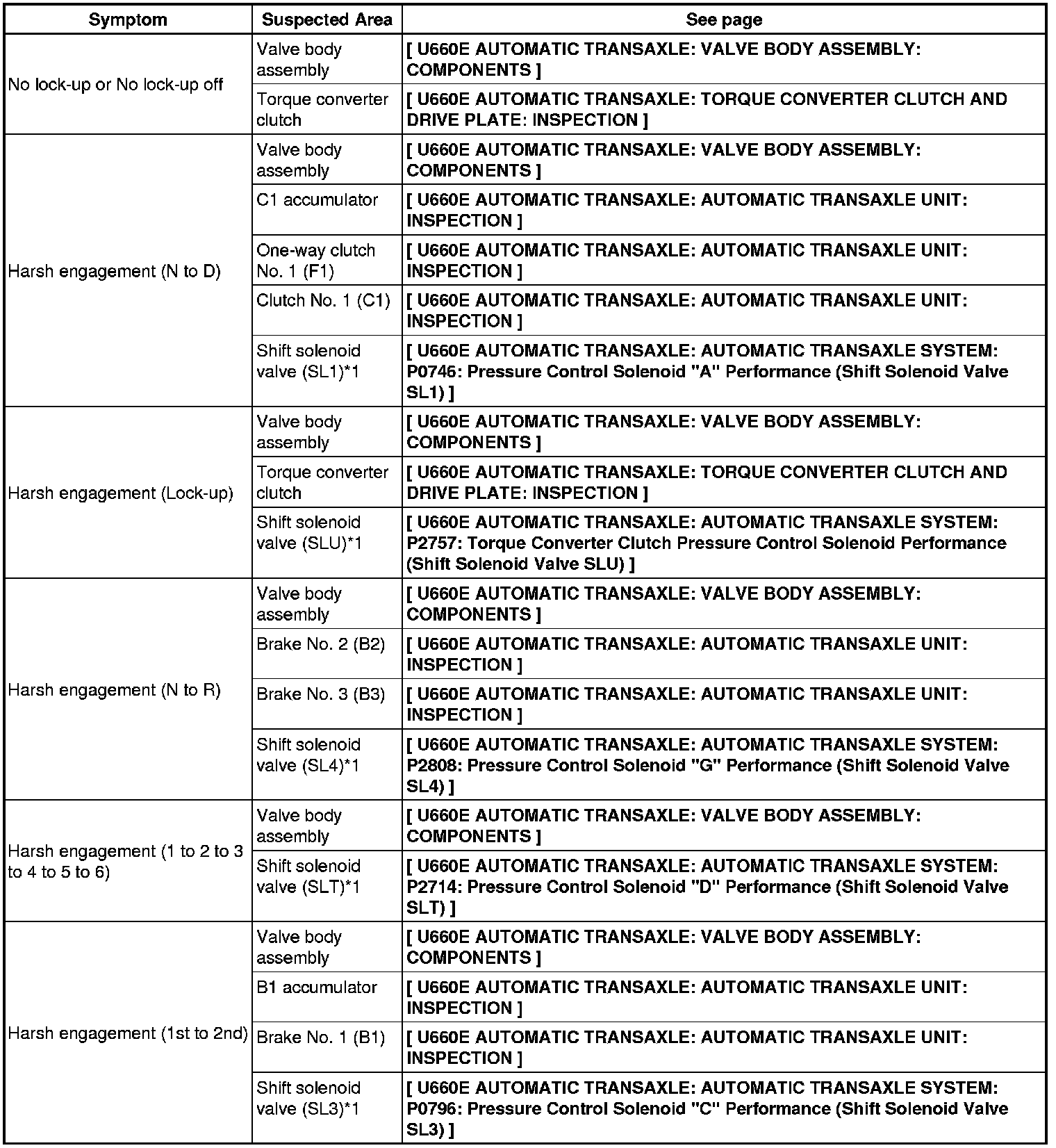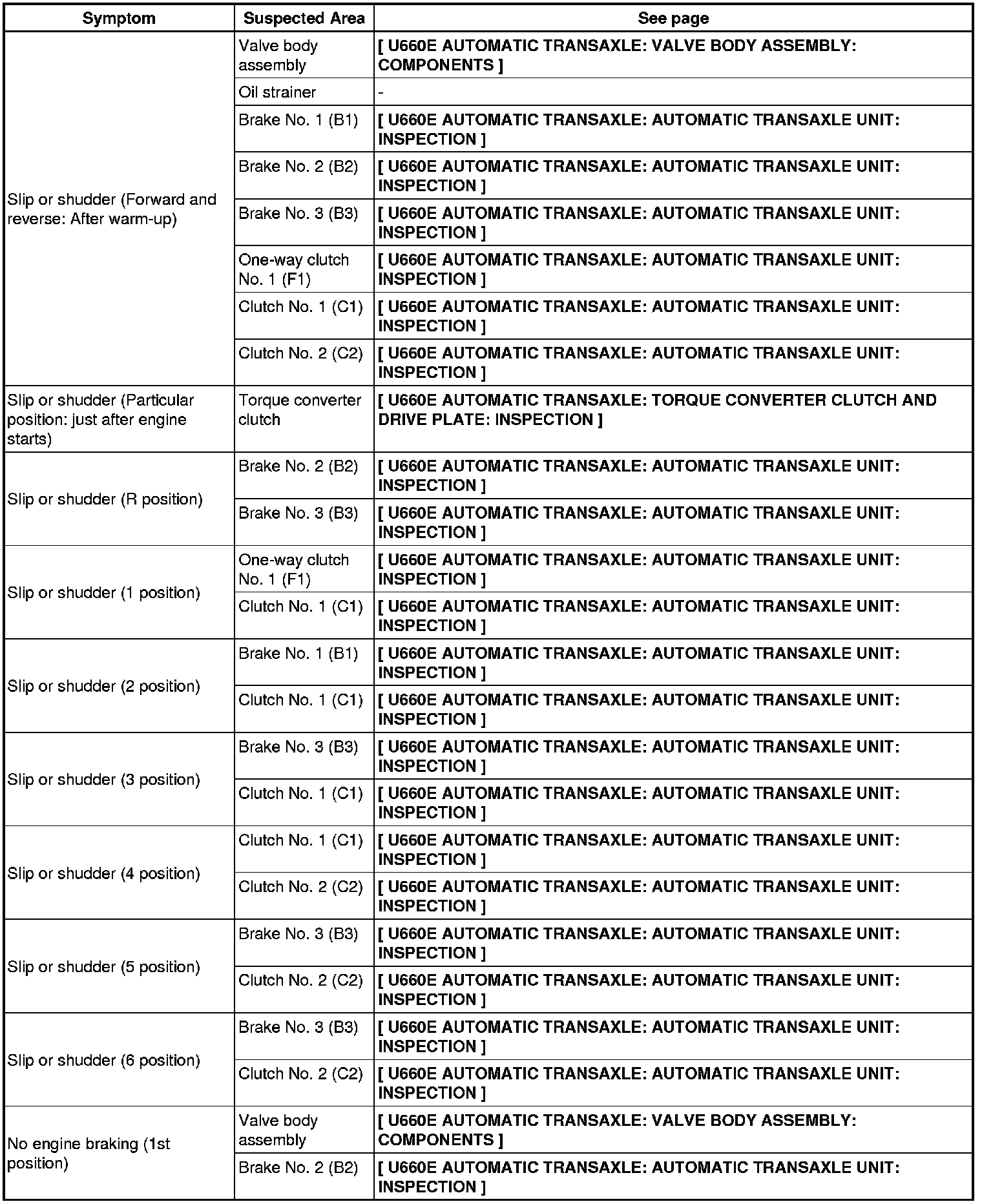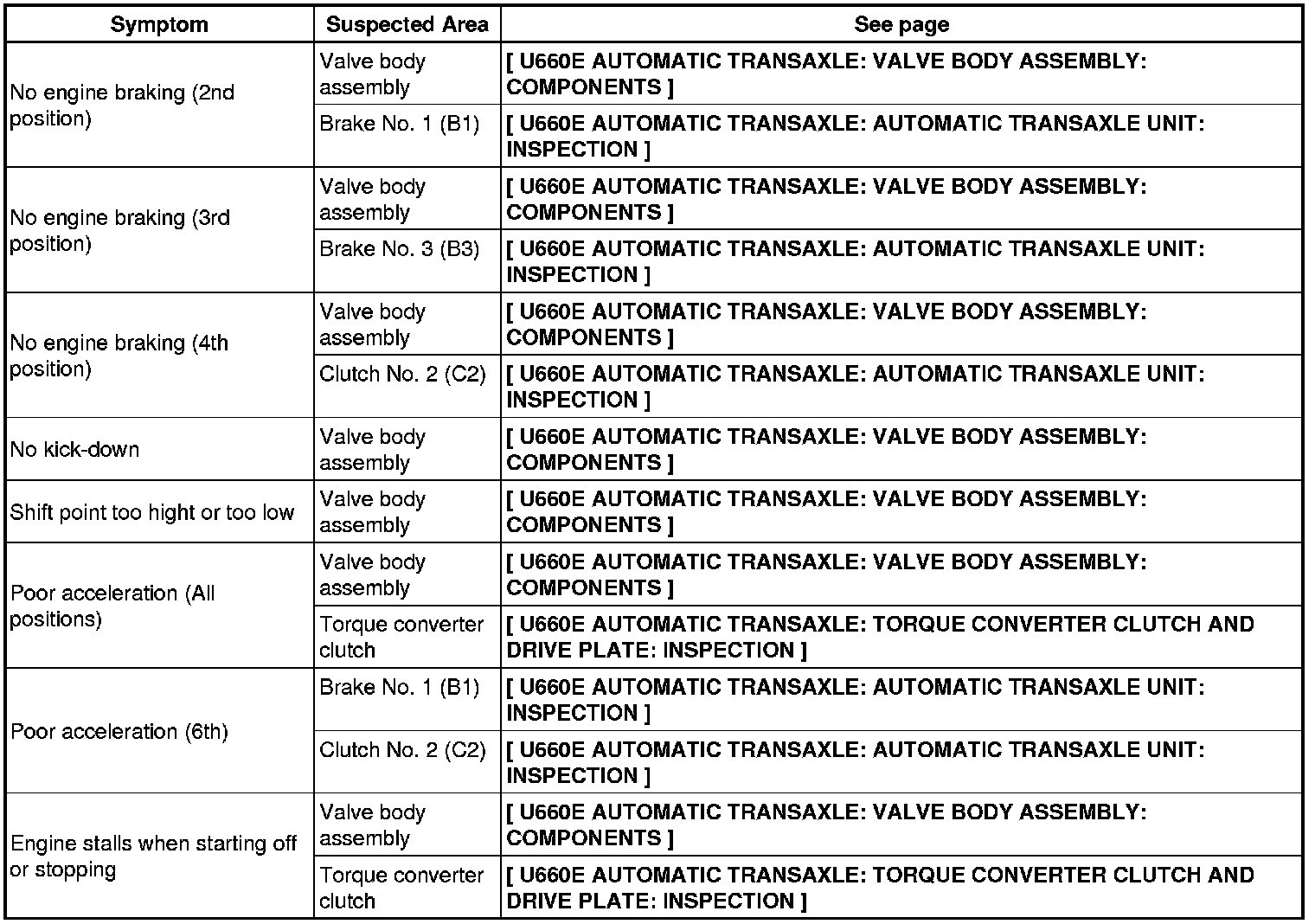 U660E AUTOMATIC TRANSAXLE: AUTOMATIC TRANSAXLE SYSTEM: PROBLEM SYMPTOMS TABLE