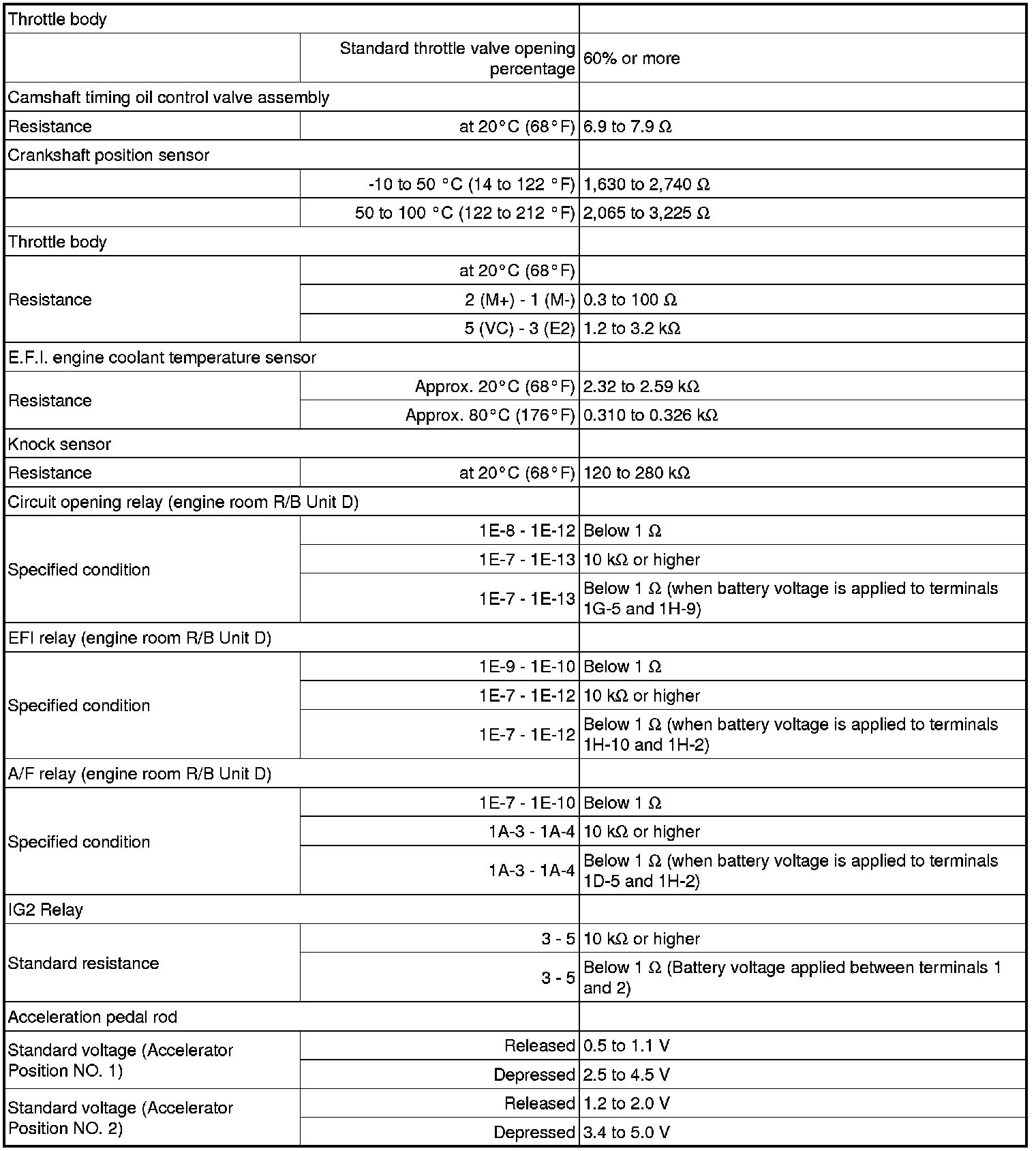 SERVICE SPECIFICATIONS: 2GR-FE ENGINE CONTROL SYSTEM: SERVICE DATA