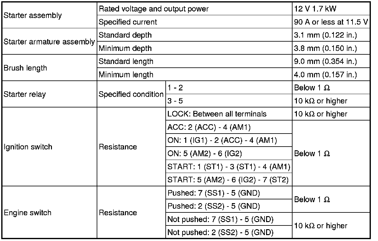 SERVICE SPECIFICATIONS: 2GR-FE STARTING: SERVICE DATA