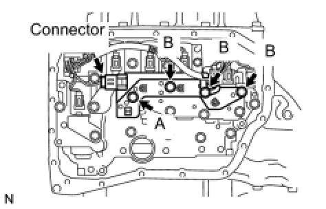 (c) Install the ATF temperature sensor assembly and clamp to the valve body with the 4 bolts.
