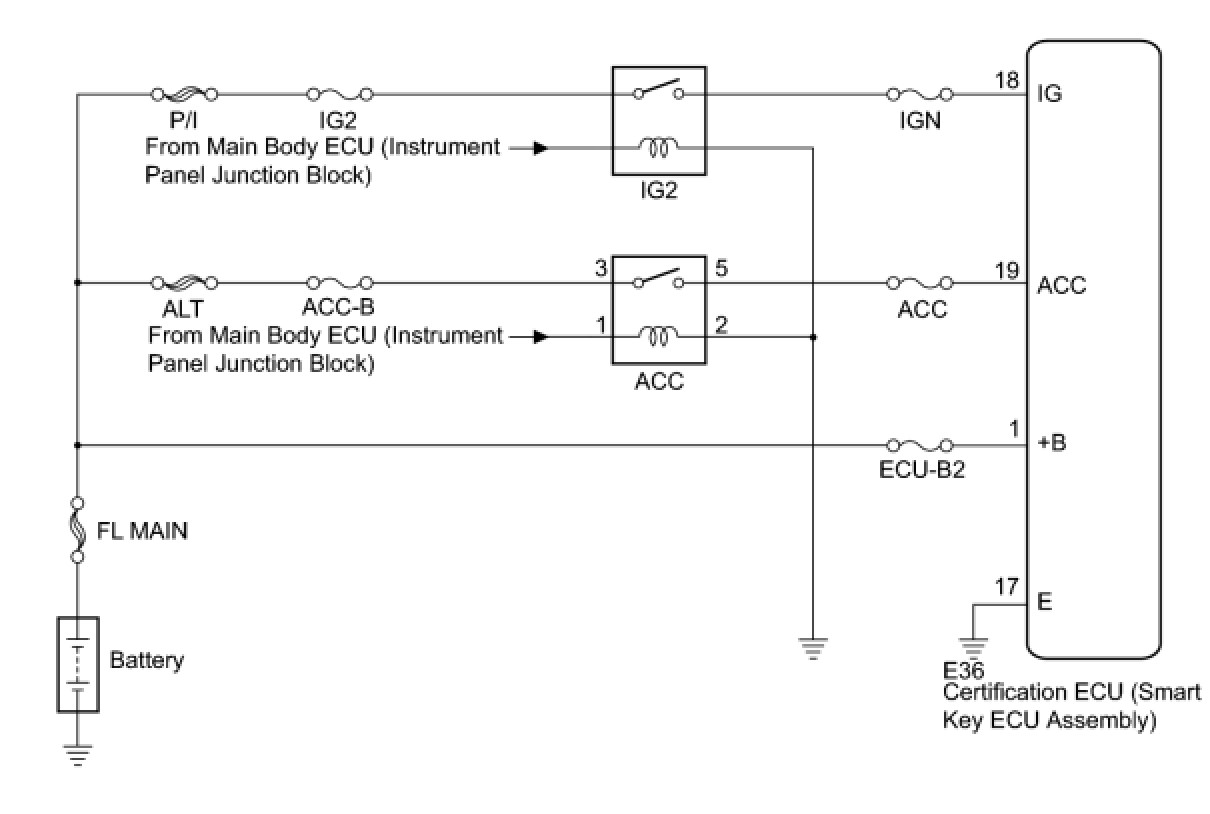 This is the power source circuit of the certification ECU (smart key ECU assembly).