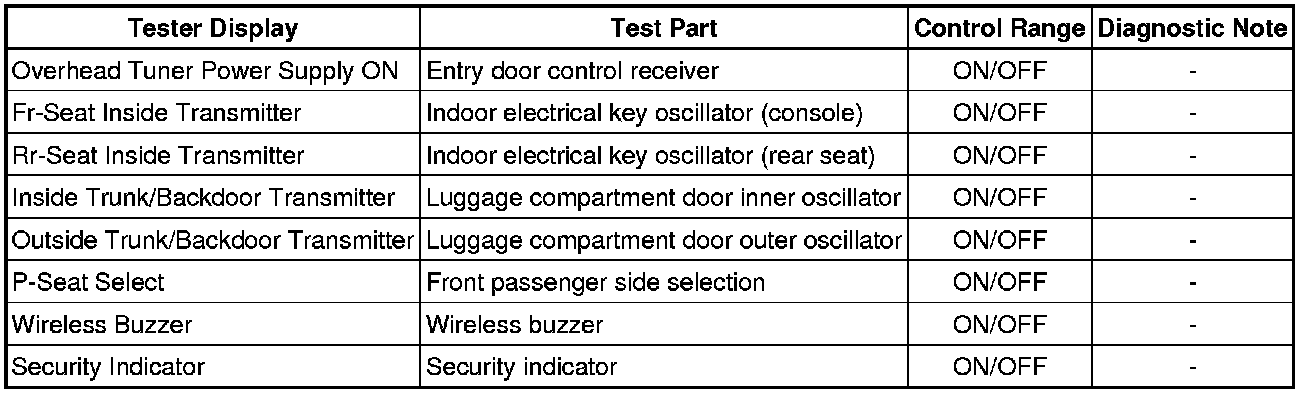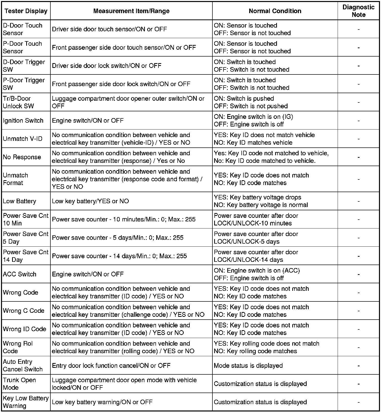 THEFT DETERRENT / KEYLESS ENTRY: SMART KEY SYSTEM (for Entry Function): DATA LIST / ACTIVE TEST