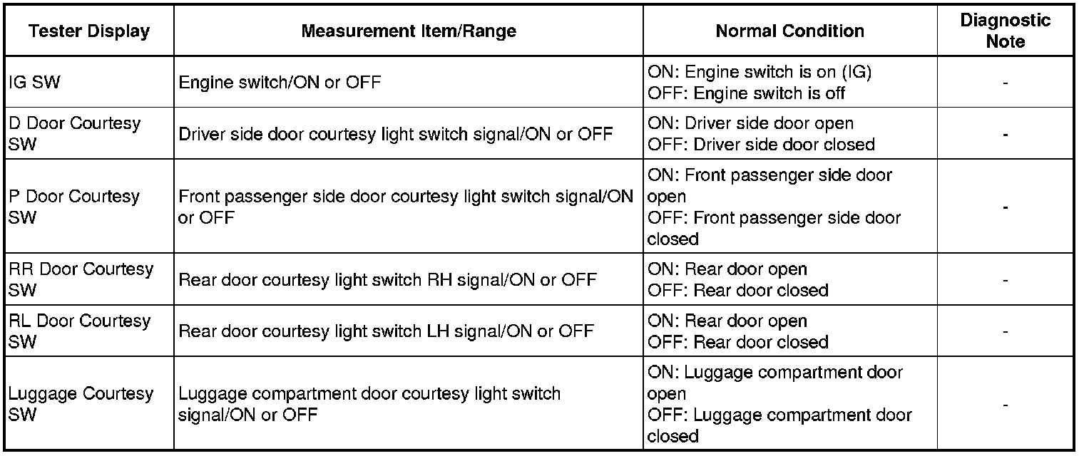 Using the Techstream to read the Data List allows the values or states of switches, sensors, actuators and other items to be read without removing any parts. This non-intrusive inspection can be very useful because intermittent conditions or signals may be discovered before parts or wiring is disturbed. Reading the Data List information early in troubleshooting is one way to save diagnostic time.