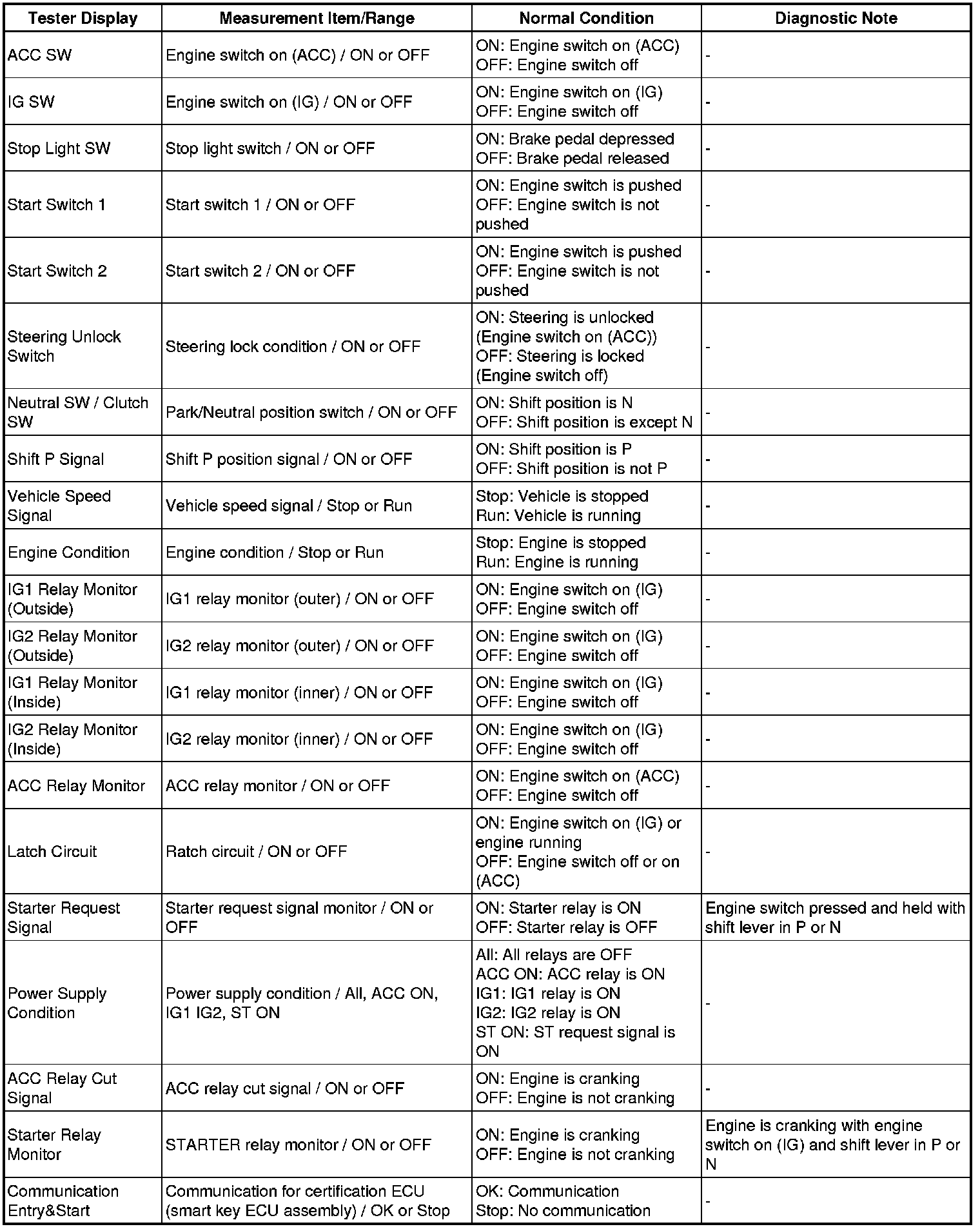 THEFT DETERRENT / KEYLESS ENTRY: SMART KEY SYSTEM (for Start Function): DATA LIST / ACTIVE TEST