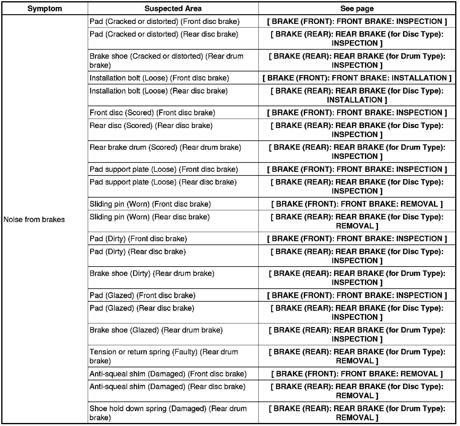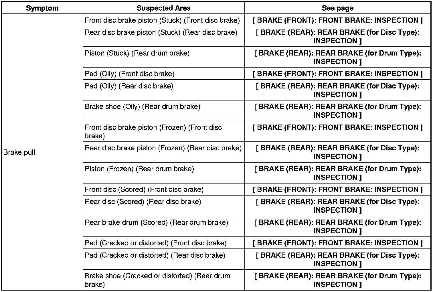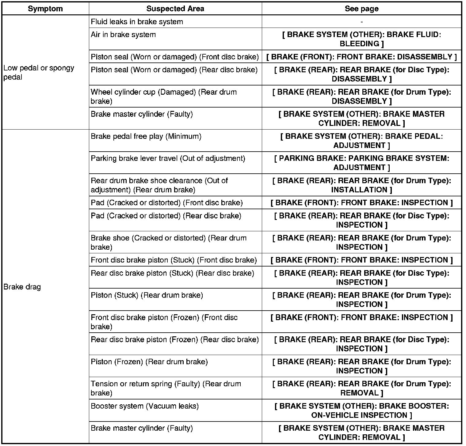 BRAKE SYSTEM (OTHER): BRAKE SYSTEM: PROBLEM SYMPTOMS TABLE