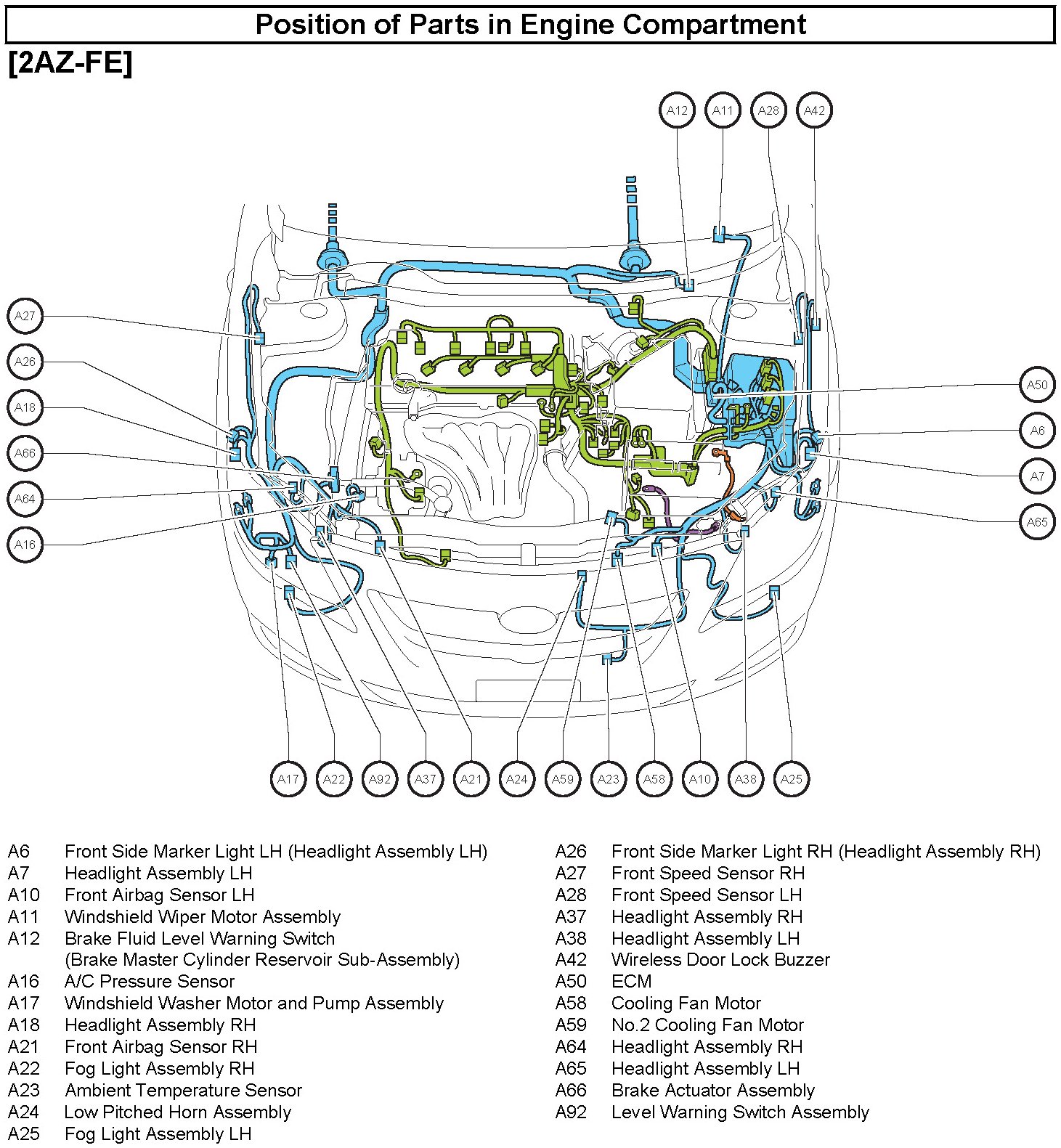Position of Parts In Engine Compartment