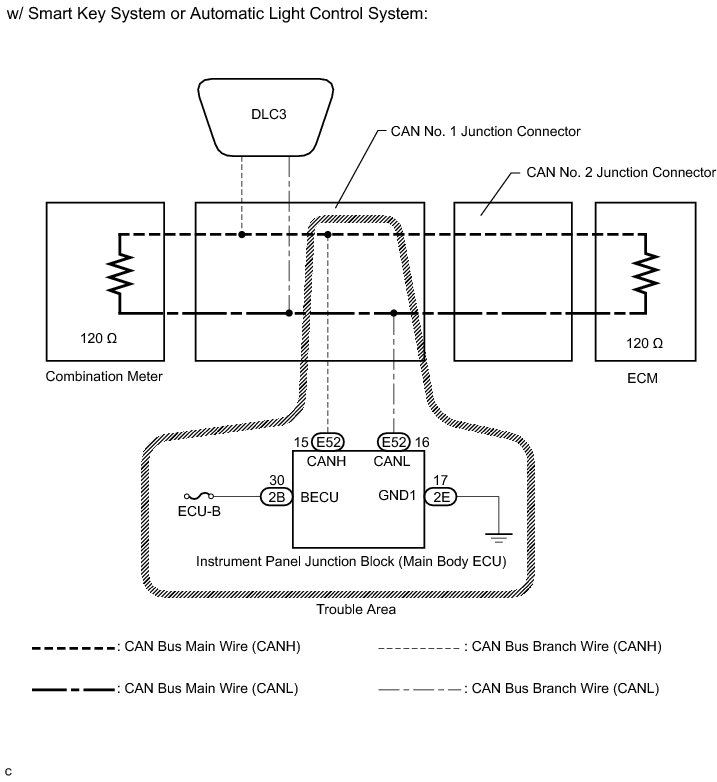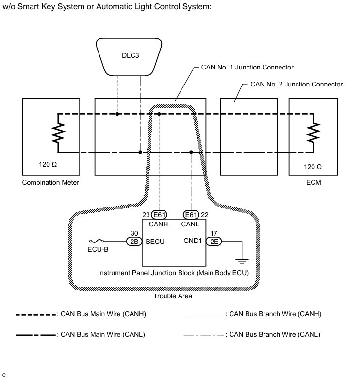 1. CHECK CAN BUS LINE FOR DISCONNECTION (MAIN BODY ECU BRANCH WIRE)