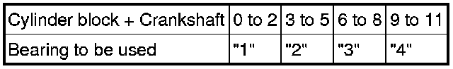 EXAMPLE: Cylinder block "3" + Crankshaft "5" = Total number 8 (Use bearing "3")