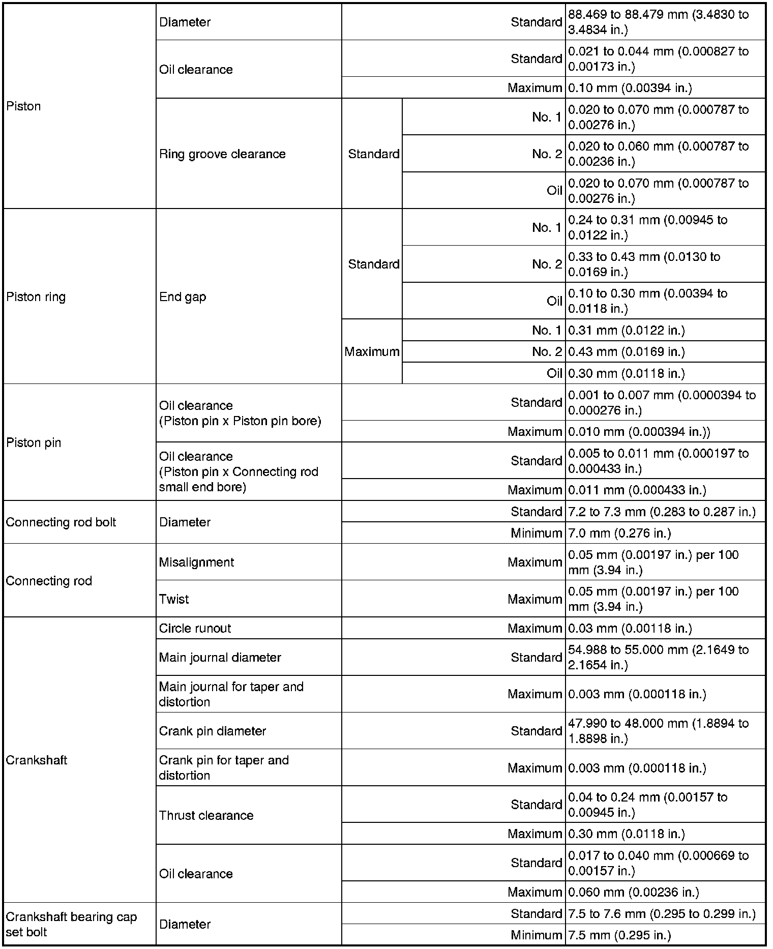 SPECIFICATIONS: 2AZ-FE ENGINE MECHANICAL: SERVICE DATA