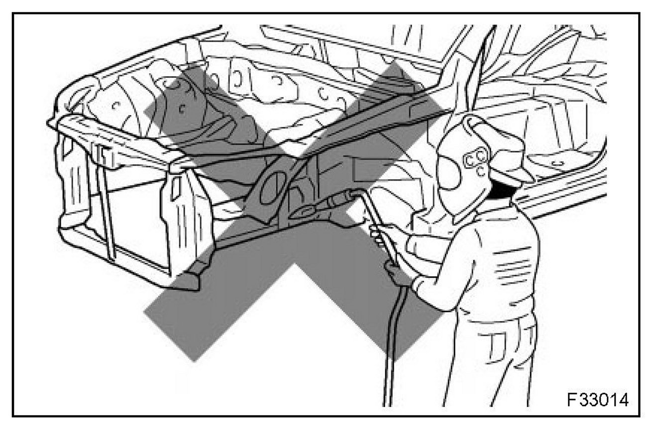 If body structure parts are heat repaired with an acetylene torch or other heating source, the crystalline organization of the steel sheet will change and their strength of the steel sheet will be reduced. The ability of the body to resist rust is significantly lowered as well since the rust resistant zinc coating is destroyed by heat and the steel sheet surface is oxidized.