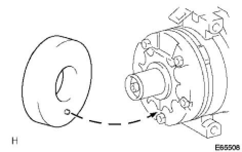 (a) Install the magnet clutch stator with the parts shown in the illustration matched.