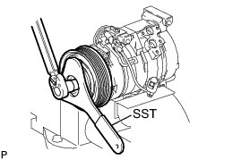 (f) Using SST, hold the magnet clutch hub and install the bolt.
