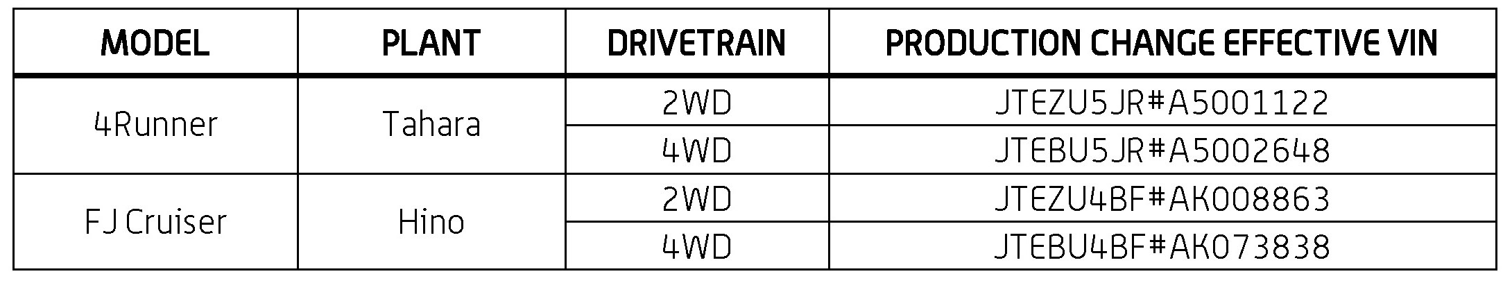 This TSB applies to vehicles produced BEFORE the Production Change Effective VIN shown.