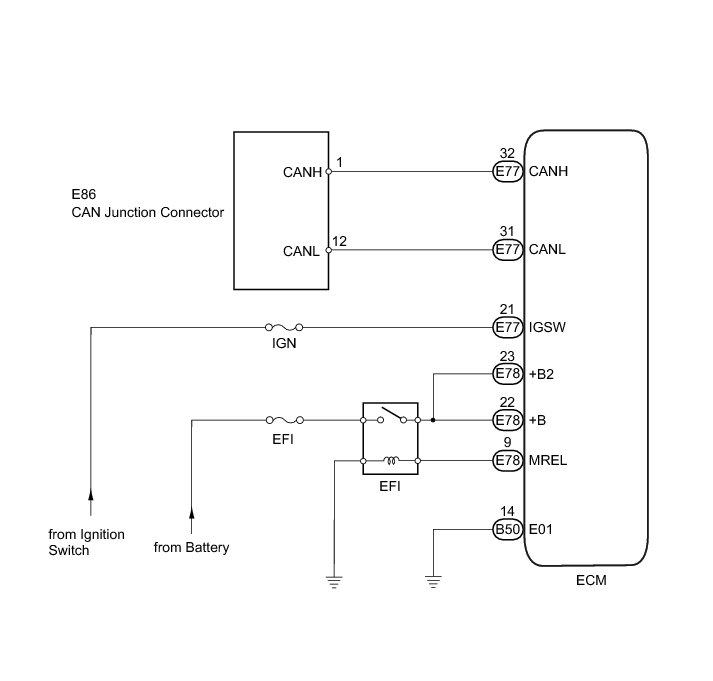 (b) Disconnect the E77, E78 and B50 ECM connectors.