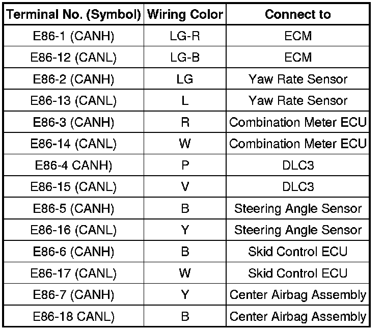 CAN COMMUNICATION: CAN COMMUNICATION SYSTEM: TERMINALS OF ECU