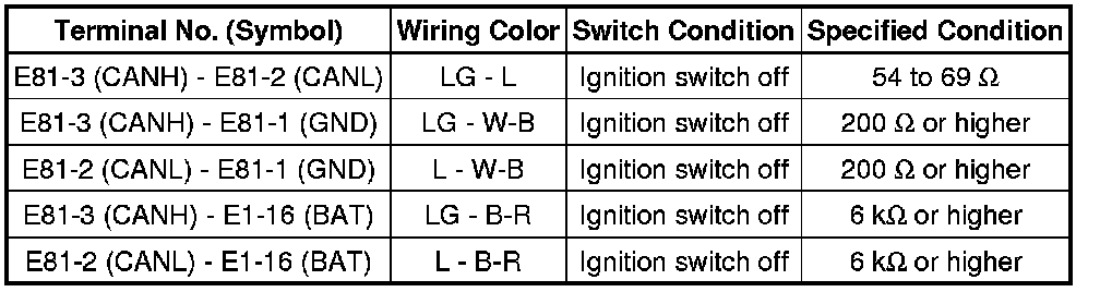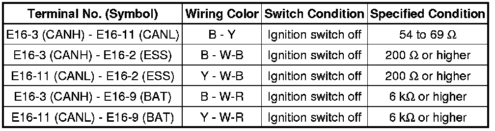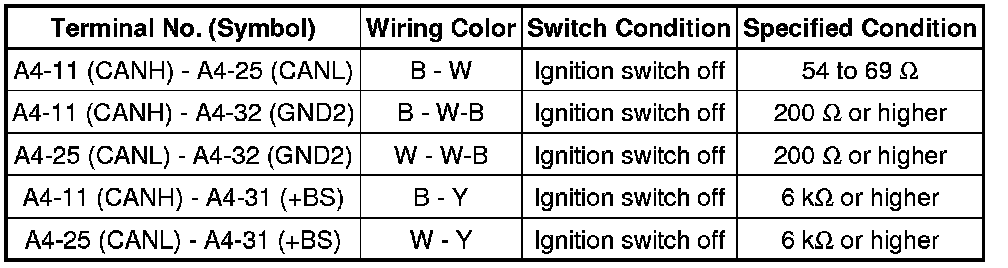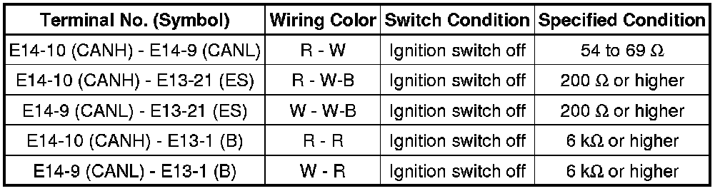 * Turn the ignition switch off before measuring the resistances of the CAN main wire and the CAN branch wire.