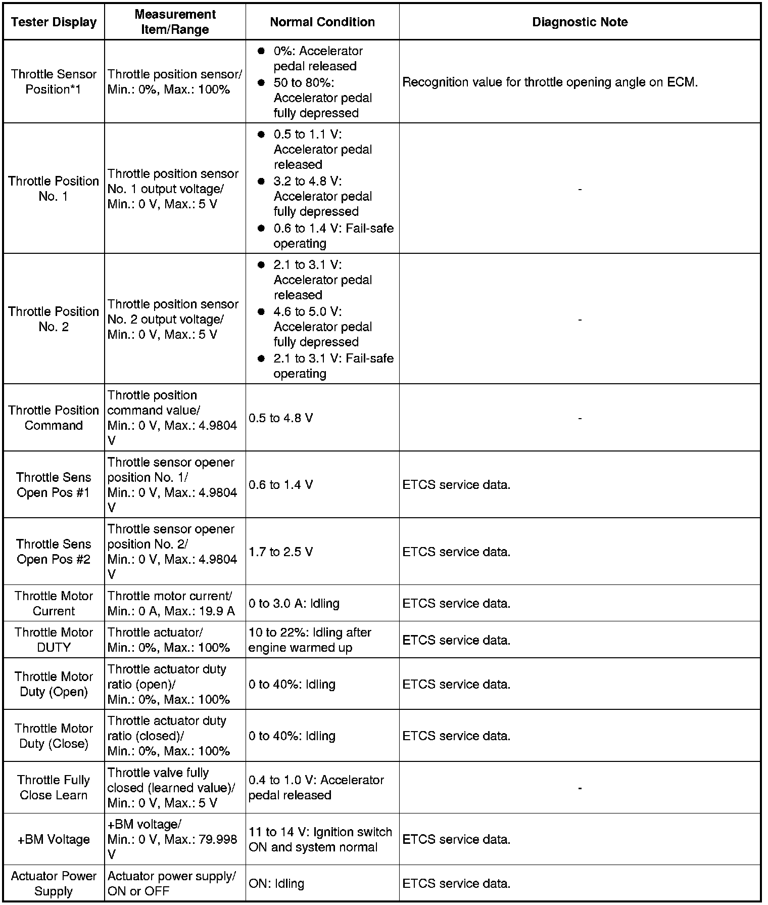 * *1: Excluding throttle valve opening percentage due to Idle Speed Control (ISC).
