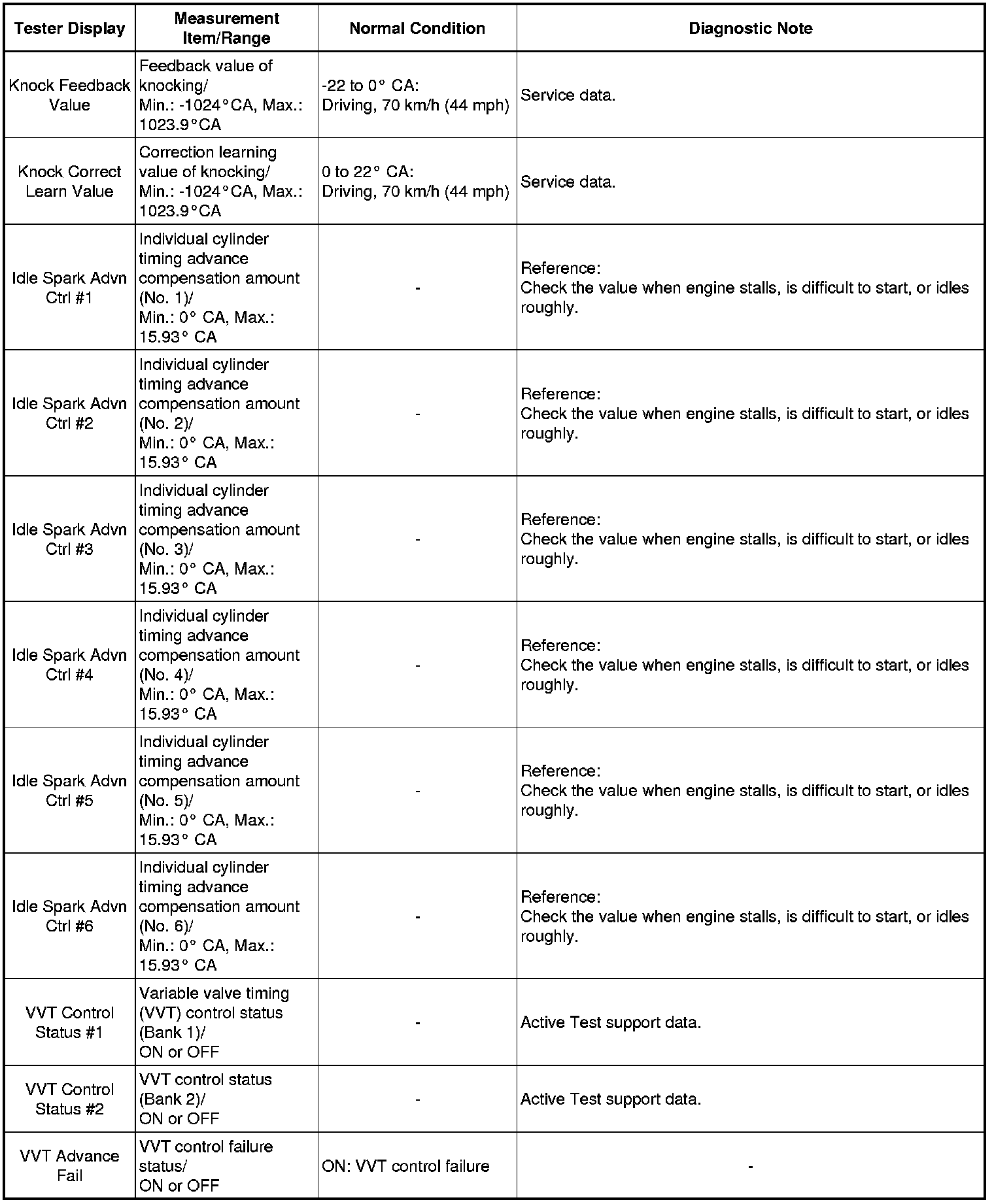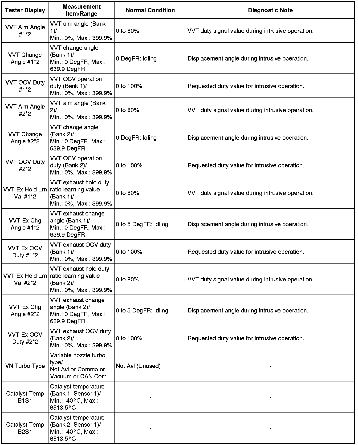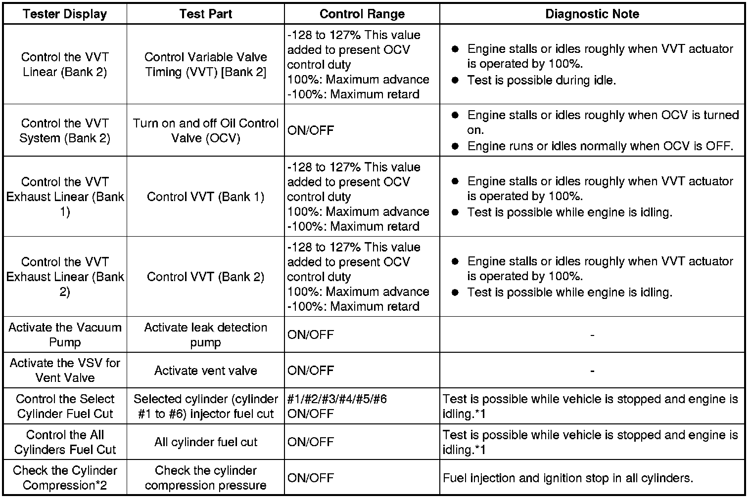 * *2: Data List values are only displayed when performing the following Active Tests: Control the VVT Linear (Bank 1), Control the VVT Linear (Bank 2), Control the VVT Exhaust Linear (Bank 1) and Control the VVT Exhaust Linear (Bank 2). For other Active Tests, the Data List value will be 0.