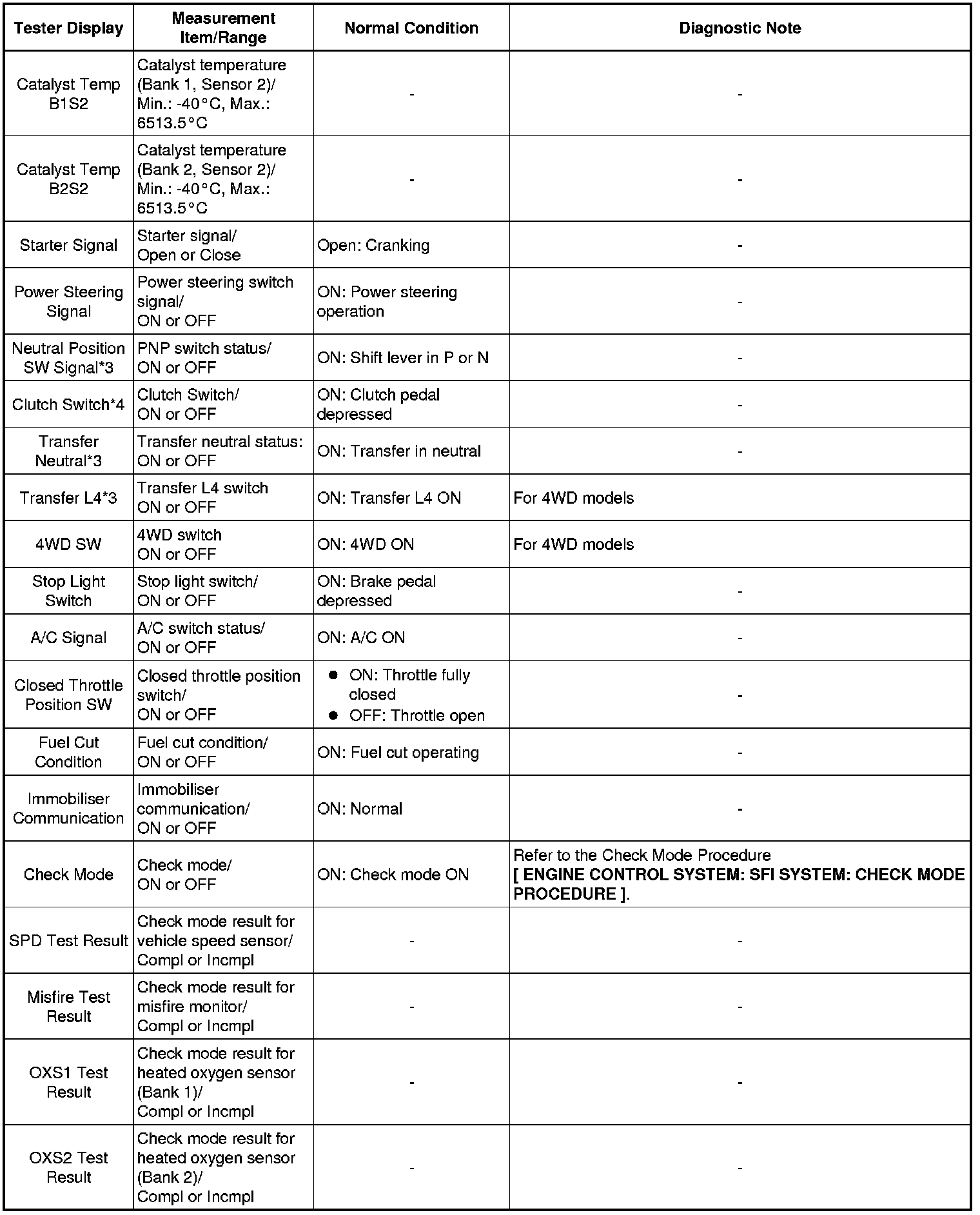 * *1: If the display of the Data List's Catalyst OT MF F/C item is Avail, perform this Active Test as described below.