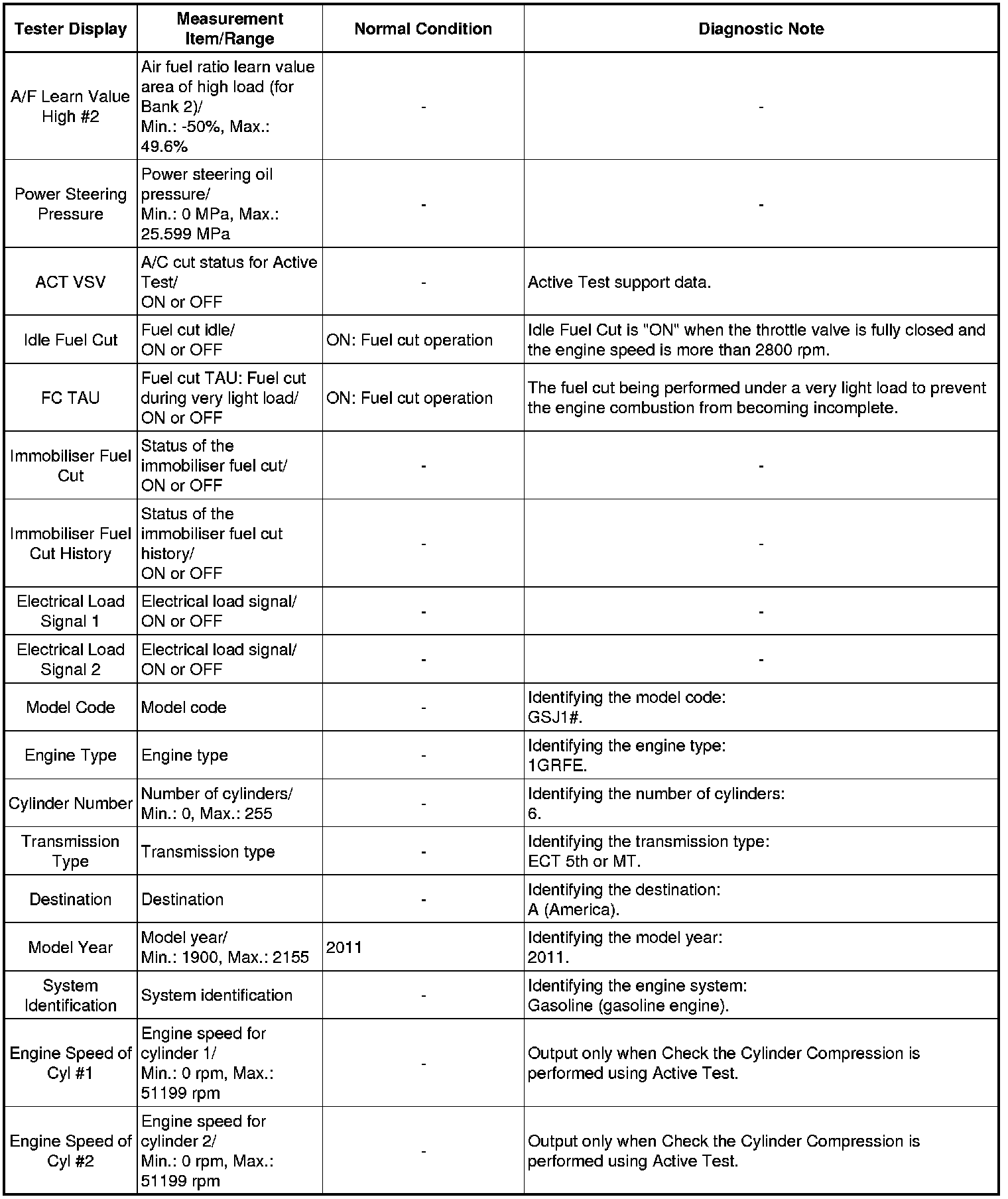 *2: When cranking the engine, each cylinder measures the engine speed.