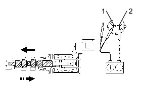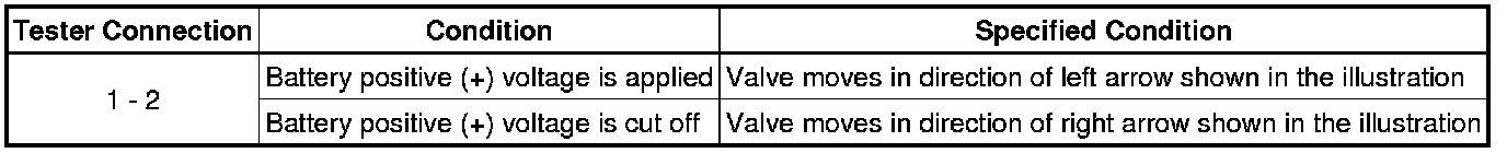 (b) Connect the positive (+) lead of the battery to terminal 1 and the negative (-) lead to terminal 2, and check the movement of the valve.
